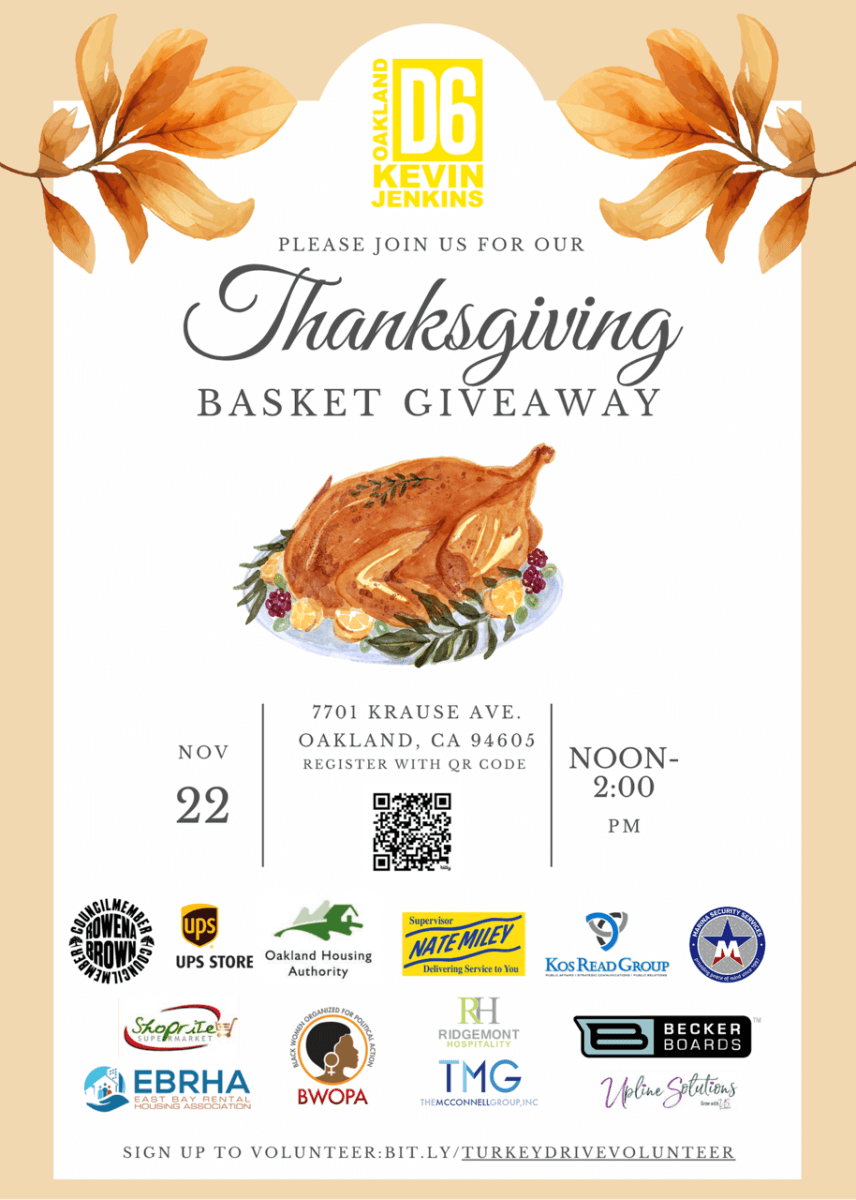 Council member Kevin Jenkins is giving away FREE turkey baskets to kick off the holiday season. Don't miss out on this opportunity to spread some holiday cheer. Let's come together as a community and celebrate the spirit of giving. See you there!